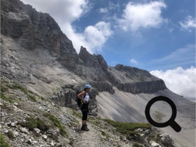 Wenn man tut was man liebt, ist man hoch motiviert. Bald schnürte ich die Schuhe für längere Runden. Eine Freundin wollte am Karlsruher Marathon teilnehmen und suchte eine Begleitung. Ich sagte ihr zu aber sie musste mir folgendes versprechen: ganz hinten starten, langsam laufen, niemals auf die Uhr schauen und wer keine Lust mehr hat steigt aus. Das Projekt gelang. Wir waren glücklich. Aber Stadtmarathons mag ich nicht. Mein Bewegungsfreak schickte mich in den Wald und in die Hügel, dann auf die Pfade und dann in die Alpen. Zur simplen rhythmischen Bewegung kam nun ein prickelndes, koordinatives Spiel. Ich war restlos begeistert und meldete mich beim Zermattmarathon an. Auch dieses Projekt gelang. Aber mit Tausenden am Start stehen mag ich nicht. Mein Bewegungsfreak suchte kleine Veranstaltungen und wurde in der Skyrunning Szene fündig. Meine Lieblingsstrecke in diesem Laufkalender ist der Trofeo Kima. Die längste Strecke, die ich jemals gelaufen bin, war der Südtirol Ultra Skyrace. Wer kein Wettkampf-Gen besitzt läuft solche Strecken eigentlich am liebsten alleine. Für die eigene Sicherheit ist man nämlich mit und ohne Startnummer selbst verantwortlich. Aber ich dachte mir: bei einem Unfall mit Startnummer funktioniert bestimmt die Rettung besser, weil die Bergwacht bereits an der Strecke steht.