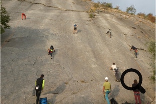 Wie ein Sprungbrett ragt diese Granitplatte 300 Meter über dem Grund aus der Bergflanke. Mein Protest wurde ignoriert. Ich solle mich nicht so anstellen, es sei so einfach wie auf dem Gehweg. Das war gelogen! Mein Herz klopft heute noch vor Angst, wenn ich daran denke. Aus heutiger Sicht ist Vaters Risikomanagement grobfahrlässig und seine Ignoranz mir gegenüber übergriffig. Dabei wäre es mit der richtigen Motivation und mit einfühlsamen Verständnis ganz einfach gewesen aus mir eine begeisterte Kletterin zu machen. Aber als kleines Mädchen musste ich in Sachen Sport eine Lösung finden. Ich übernahm die Angsthasenrolle. Dies brachte mir zwar wenig familiäre Anerkennung und blockierte die Entwicklung eines soliden Selbstvertrauens, aber ich war vor übergriffigen Erwartungen sicherer als meine Geschwister und verschaffte mir eine gewisse Autonomie. Mit 14 Jahren verweigerte ich Kletterausflüge und meldete mich bei verschiedenen Sportvereinen ab.