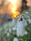 Auf dem Rückweg kam ich an einem Feld mit blühenden Schneeglöckchen vorbei während die riesige orange-rote Sonnenscheibe unter dem Horizont verschwand.
